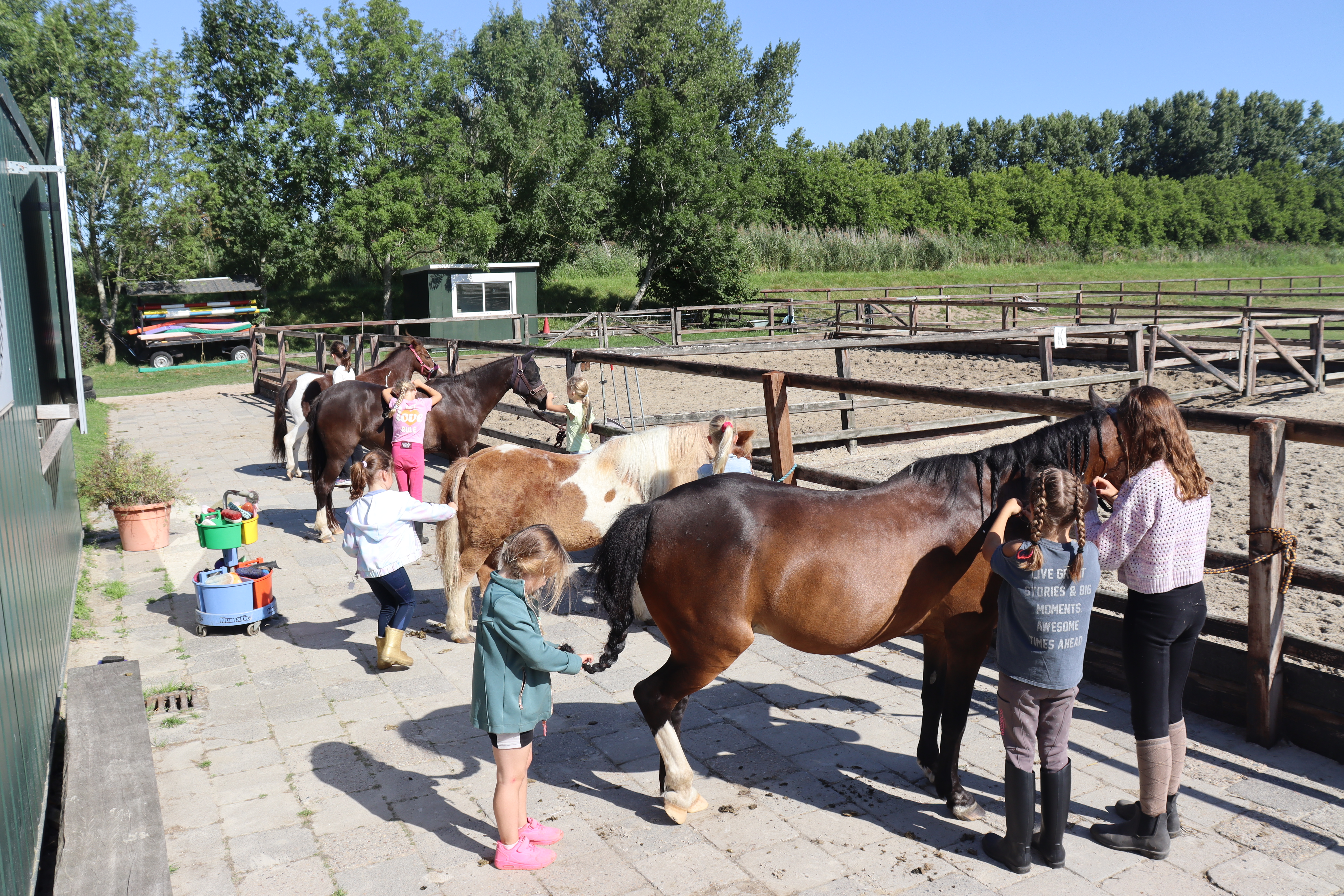 - Pony’s verzorgen, poetsen en wandelen